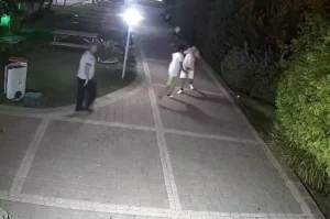 ADANA’da Hasan B., oturdukları sitenin bahçesinde oğlu M.B.’nin (11) kavga ettiği A.K.’yı (13) darbetti. Olay anı, sitenin güvenlik kamerasına yansıdı.